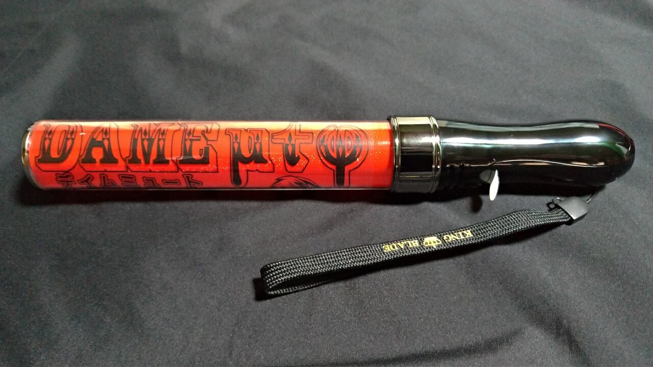 DAMEμtφの文字とmidoが内側にデザインされたペンライトです。